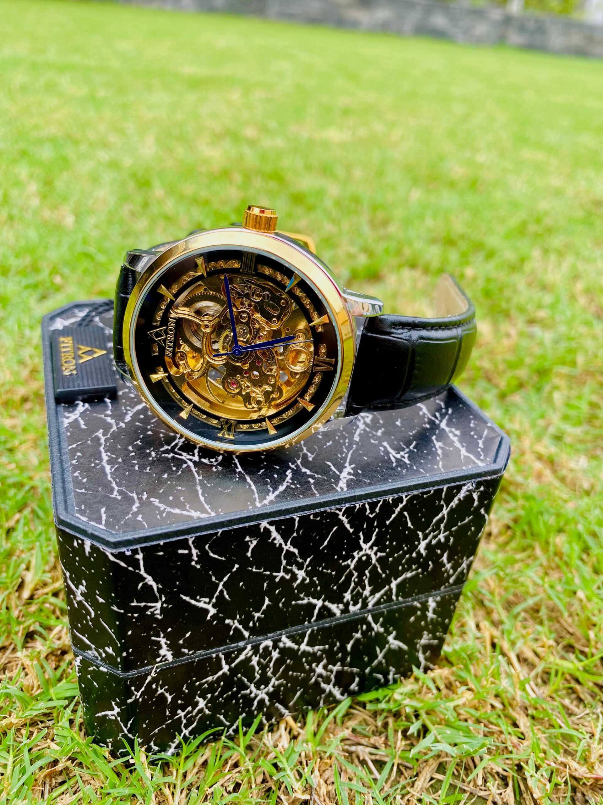 Skeleton Design – The transparent dial showcases the intricate mechanical movement inside, offering a unique aesthetic.